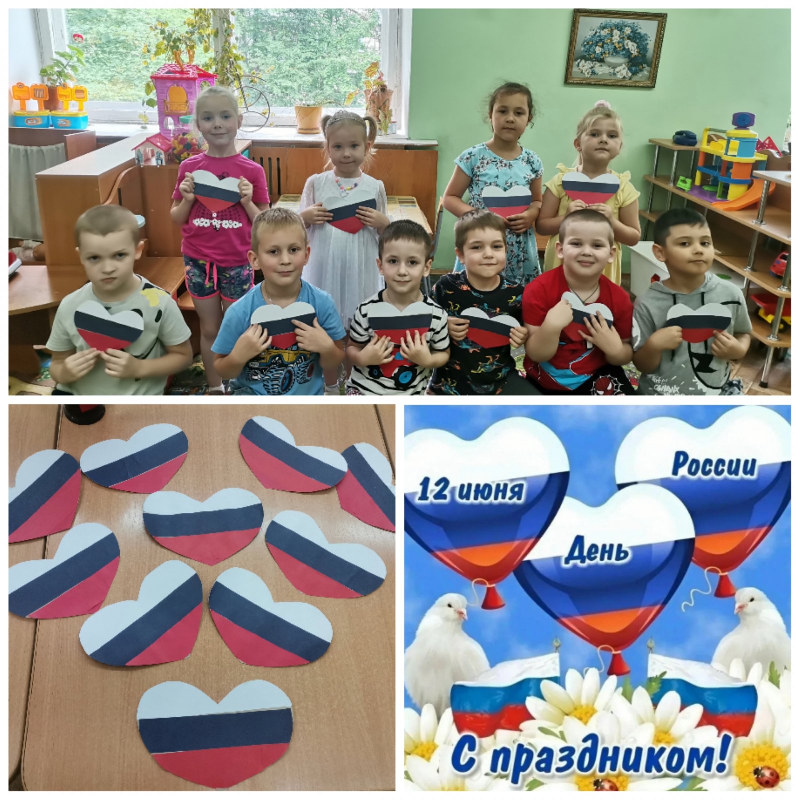 В преддверии празднования Дня России и с целью расширения представления детей о государственных праздниках, воспитания уважения к государственной символике и любви к своей Родине в средних группах был организован и проведен познавательный час «День России – главный праздник Великой страны» . Воспитанники расширили свои знания о главных государственных символах: флаг, герб, гимн. День России – это отличный повод рассказать детям ещё раз об истории нашей огромной и самой красивой в мире многонациональной страны, о многообразии народных традиций. Вместе с педагогом ребята сделали вывод, что на Земле существует много разных чудесных стран, но такая как наша одна, она самая красивая, самая любимая потому, что мы здесь родились и все живём в России.